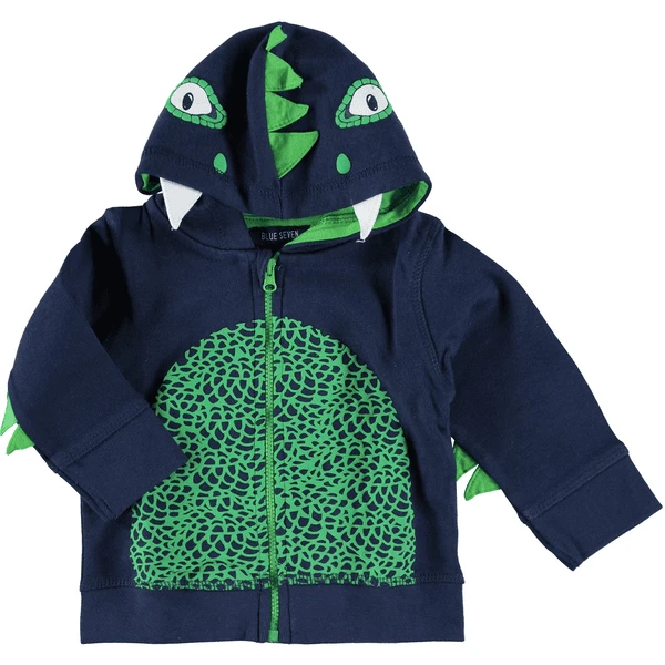 Jacke hat eine praktische Kapuze, die mit einem Drachenkopf bedruckt ist und