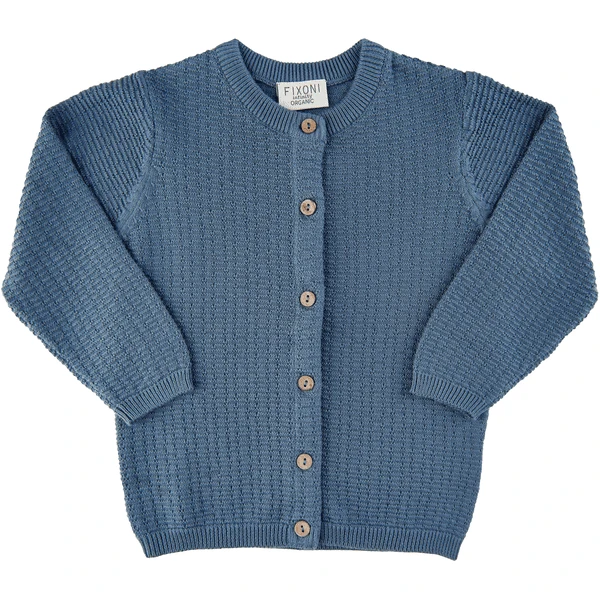 Schöner Cardigan aus 100% Baumwolle in blau. Eine Knopfleiste ermöglicht ein einfaches an- und ausziehen und gibt ein tolles Design.