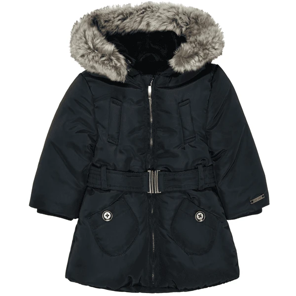Diese marine-farbende Winterjacke präsentiert sich im wunderschönen Design.