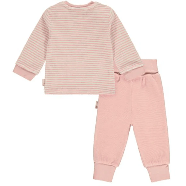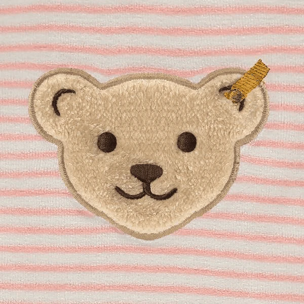 Als perfektes 2er-Set begeistern Sweatshirt und Hose schon die kleinsten Weltentdecker. Samtiger Organic Velour trägt sich besonders hautschonend. Lässig geschnitten, kommen Langarmshirt und Jogginghose immer wenn es gemütlich wird zum Einsatz: als Homewear, zu Ausflügen und auf Reisen. Schlupfbund und krempelbare Bündchen am Beinabschluss sorgen für bequemen Sitz. Rosafarbene Streifen sind Hingucker. Ein flauschiges Steiff Teddybärmotiv begleitet dein Kleines durch den Tag. Das Basic-Set ist aus Bio-Baumwolle gefertigt.